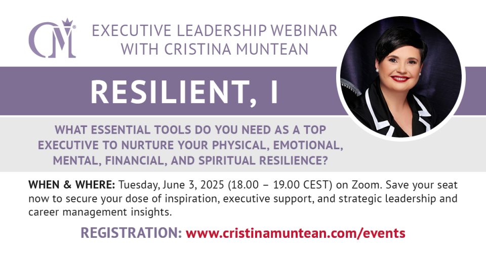 Do you have questions about our upcoming executive leadership webinar RESILIENT, I: PRIORITIZE YOUR PERSONAL RESILIENCE TO BETTER SERVE YOUR TEAM, COMPANY, AND CLIENTS? Please send them to Cristina via WhatsApp at +420 776 574 925 or via email at Cristina.muntean@vornica.com.