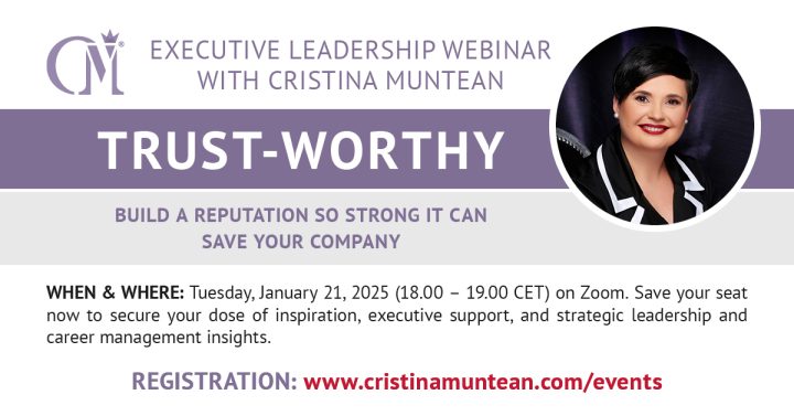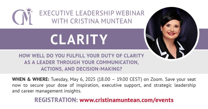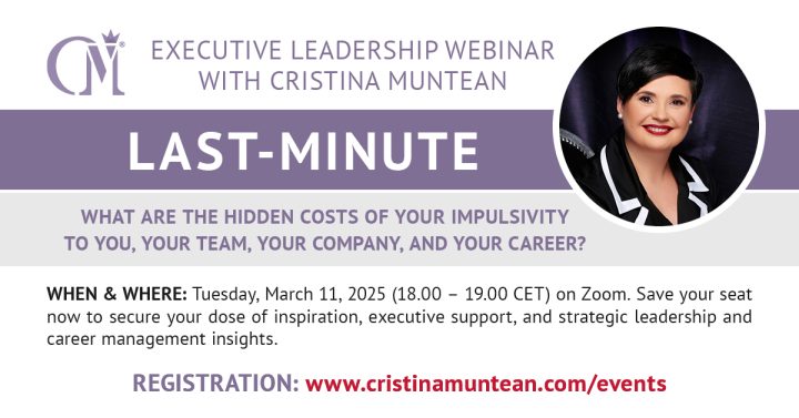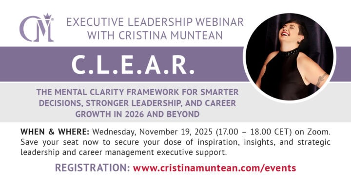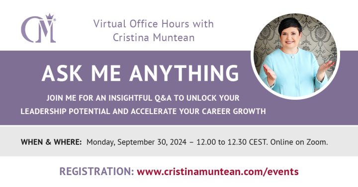 There is so much more I’d like to share with you and the world. Part of that comes your way under the form of webinars, workshops, and masterclasses on leadership that I occasionally host for my global community. Check my public event agenda below and join me for insight-packed learning experiences that will take you, your mindset, and your career to the next level.
